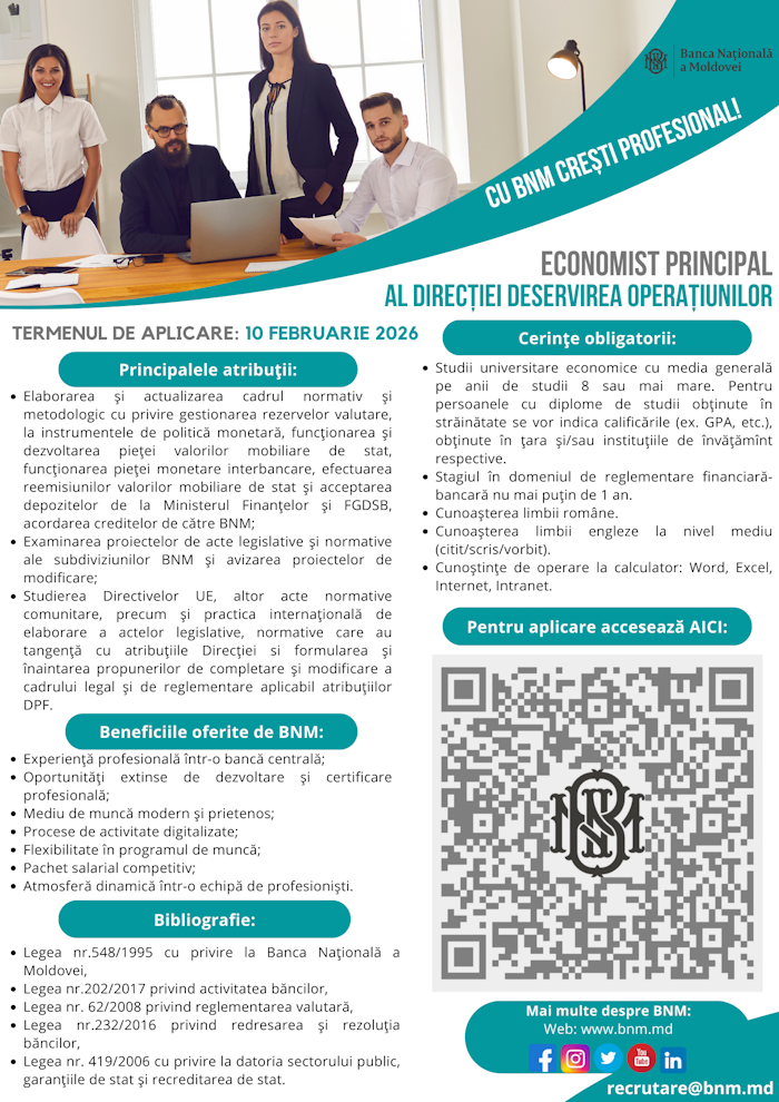 Economist coordonator, responsabil de realizarea politicii macroprudențiale