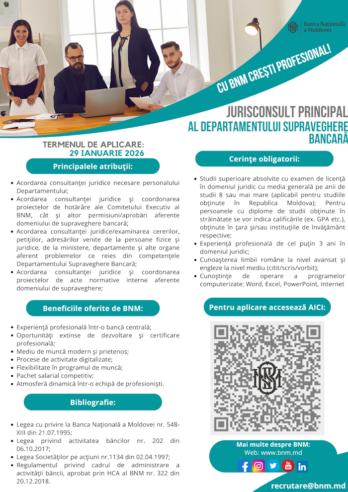 Jurisconsult principal al departamentului supraveghere bancară