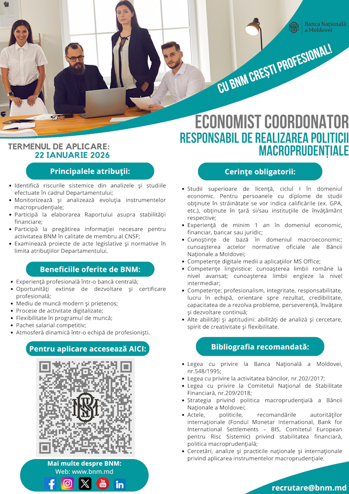 Economist coordonator, responsabil de realizarea politicii macroprudențiale